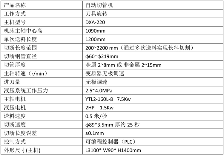 自動切管機產品特性及參數