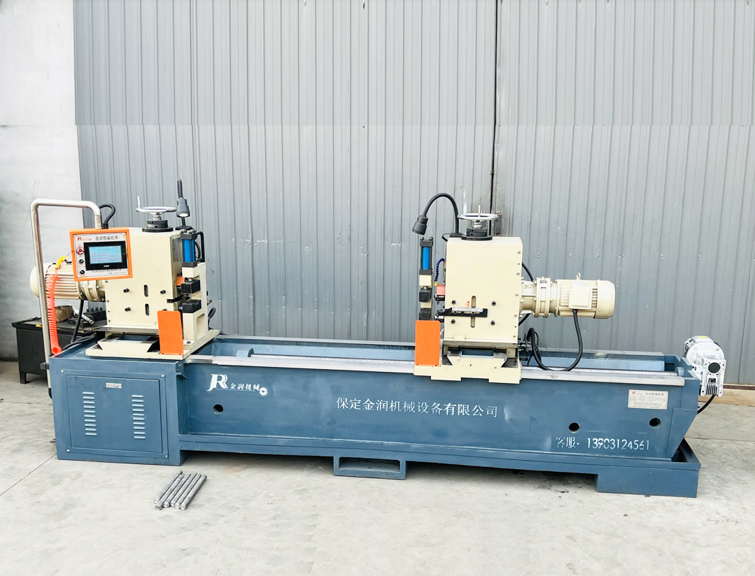 5、高配機型帶有本公司研發的儲料架和自動進料/卸料裝置(需單獨采購),設備啟動后可以一次性加工完儲料臺上放置的所有軸料,大大減少了用工量,并明顯提升生產效率,同時由于設備運轉時操作工的雙手離開了工作區域,非常有利于安全生產,可實現無人值守。(低配機型為手工放料,手工取料,一次可加工2根軸料,生產效率高,但需人工值守)
