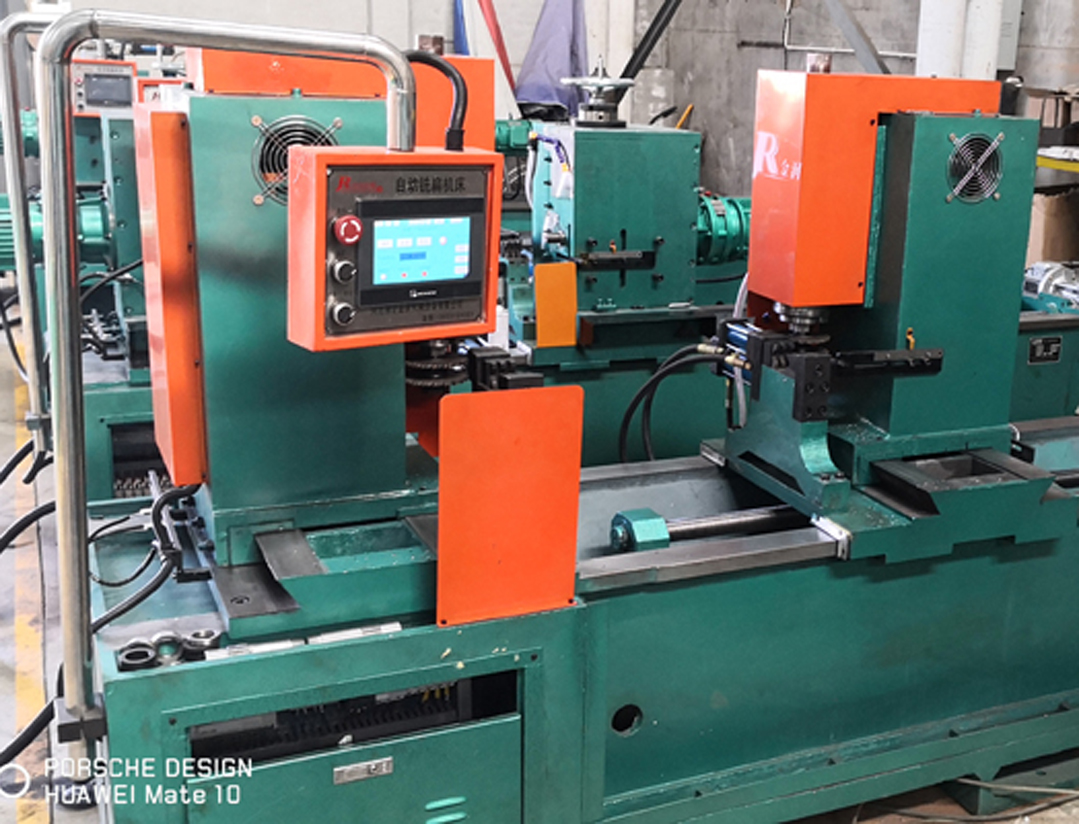 2、加工精度高,省時省力。兩個動力頭同時驅動四把盤型銑刀對托輥鋼軸兩端(四個面)一次加工成型,效率高,扁槽平面的對稱度好。